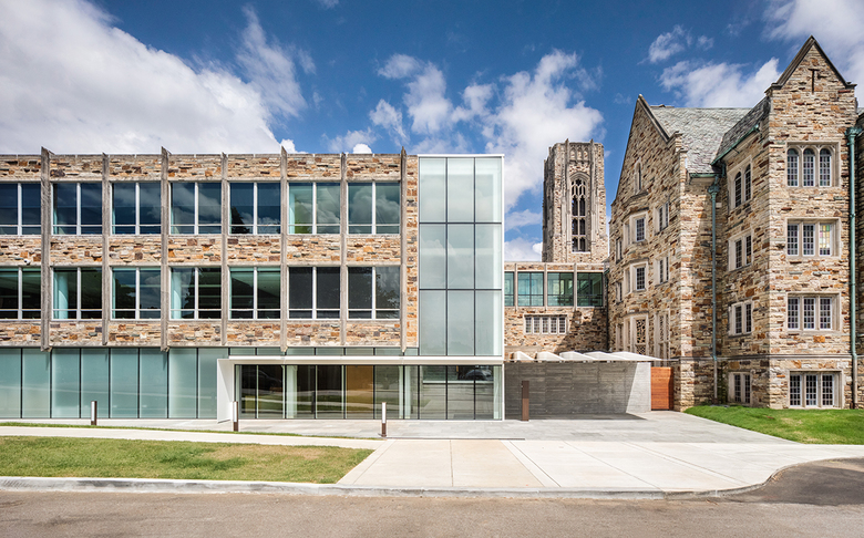 What looks like a new building attached to, and referencing, the original, neo-Gothic neighbor is in fact the renovation of a 1960s building. The renovated building updates systems, improves accessibility, and gives the institution a unified appearance. The architects at brg3s answered a few...