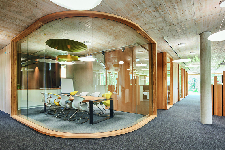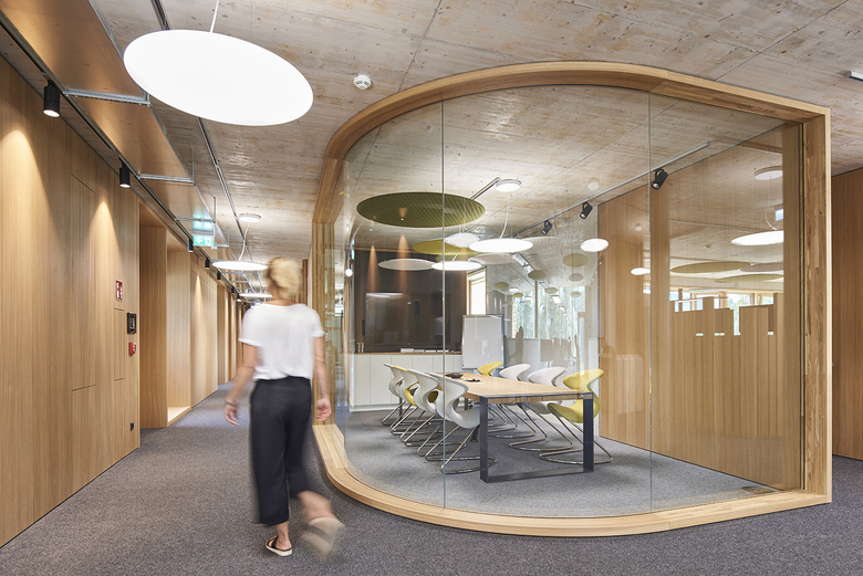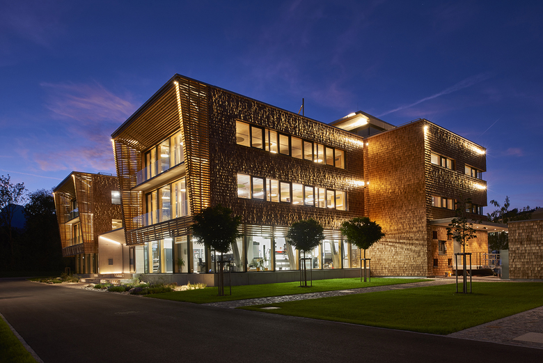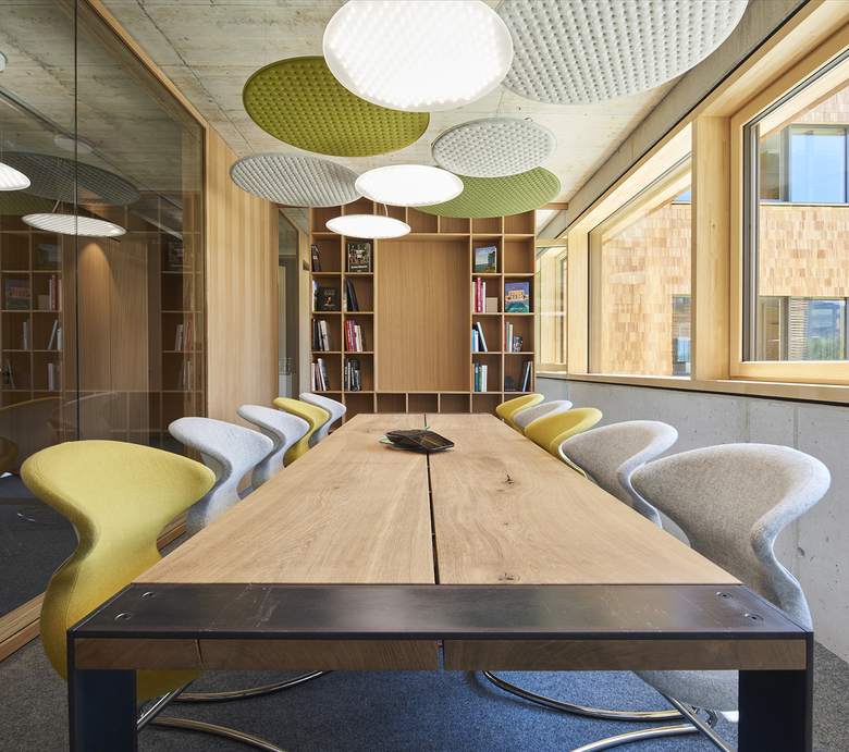 In Niederndorf ist ein nachhaltig konzipierter Neubau entstanden, der BORA als Verwaltungs- und Trainingsgebäude dient. Alles wirkt modern, greifbar, konzentriert sich auf wenige Materialien und spielt mit traditionellen Anleihen aus der Region. Innenarchitekt Simon Gafriller schuf Spannung zwischen roh wirkenden Elementen auf der einen, und Beton und Glas sowie feinstem Innenausbau auf der anderen Seite. Die Nimbus Group lieferte dazu eine Sonderlösung aus der Produktfamilie Modul R Project. Ergänzt wurden die Leuchten mit Elementen aus dem Rosso Acoustic PAD System.