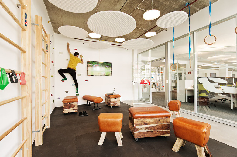 Produkte aus dem Rossoacoustic Pad System und Modul R Project-Leuchten von Nimbus machen den Cloudgedanken, der hinter digital produzierten Informationen steht, in der Fläche erlebbar. Die verschiedenen Konferenzräume und Rückzugsbereiche sind auf Basis unterschiedlicher Themen gestaltet und wurden mit viel Liebe zum Detail ausgestattet: So wurden neben einer Skihütte, einem Sportstudio und einem Baumhaus - beispielsweise ein Kino und Tischtennisraum räumlich inszeniert. Das Ergebnis ist eine moderne, zeitgemäße und gut nutzbare Bürofläche.
