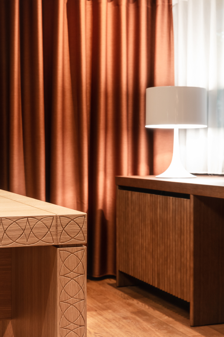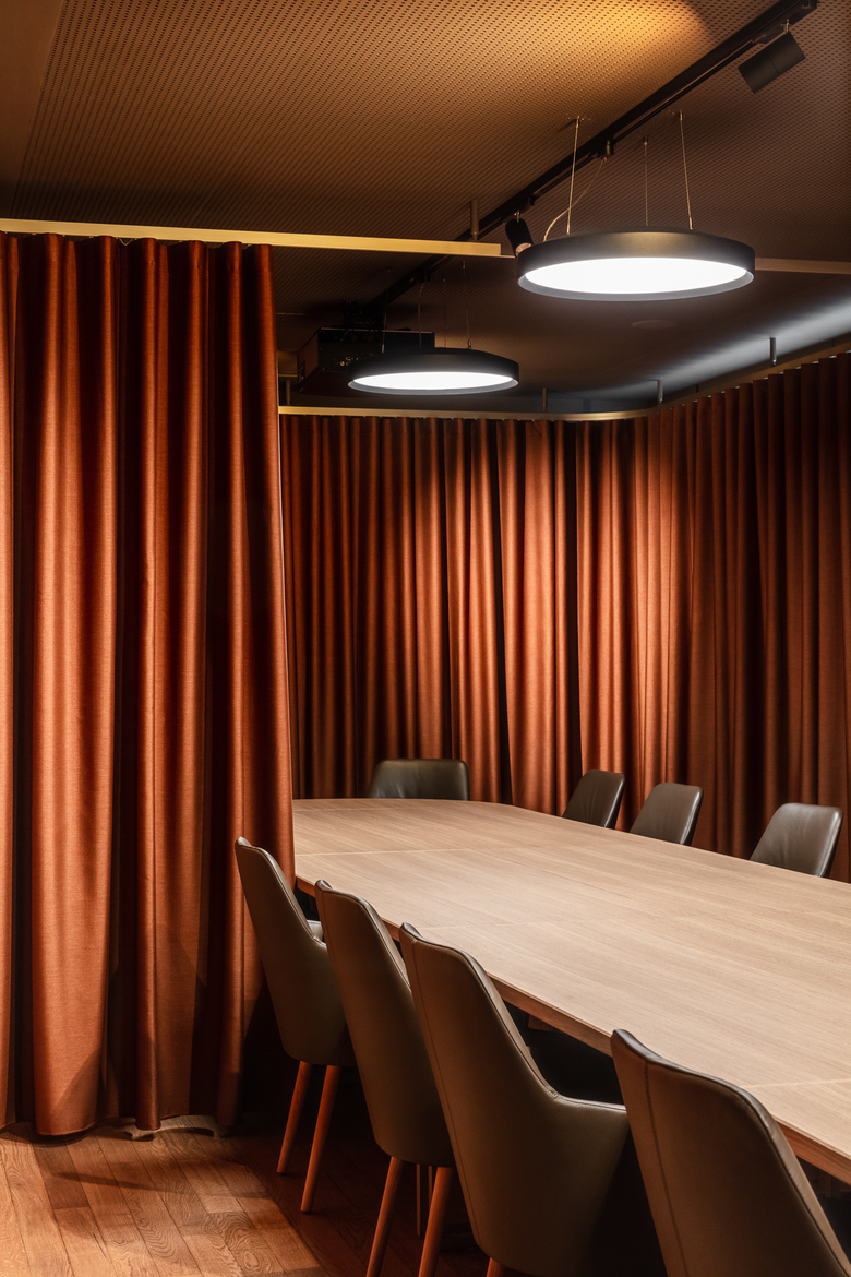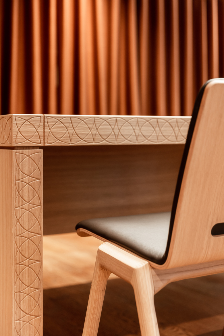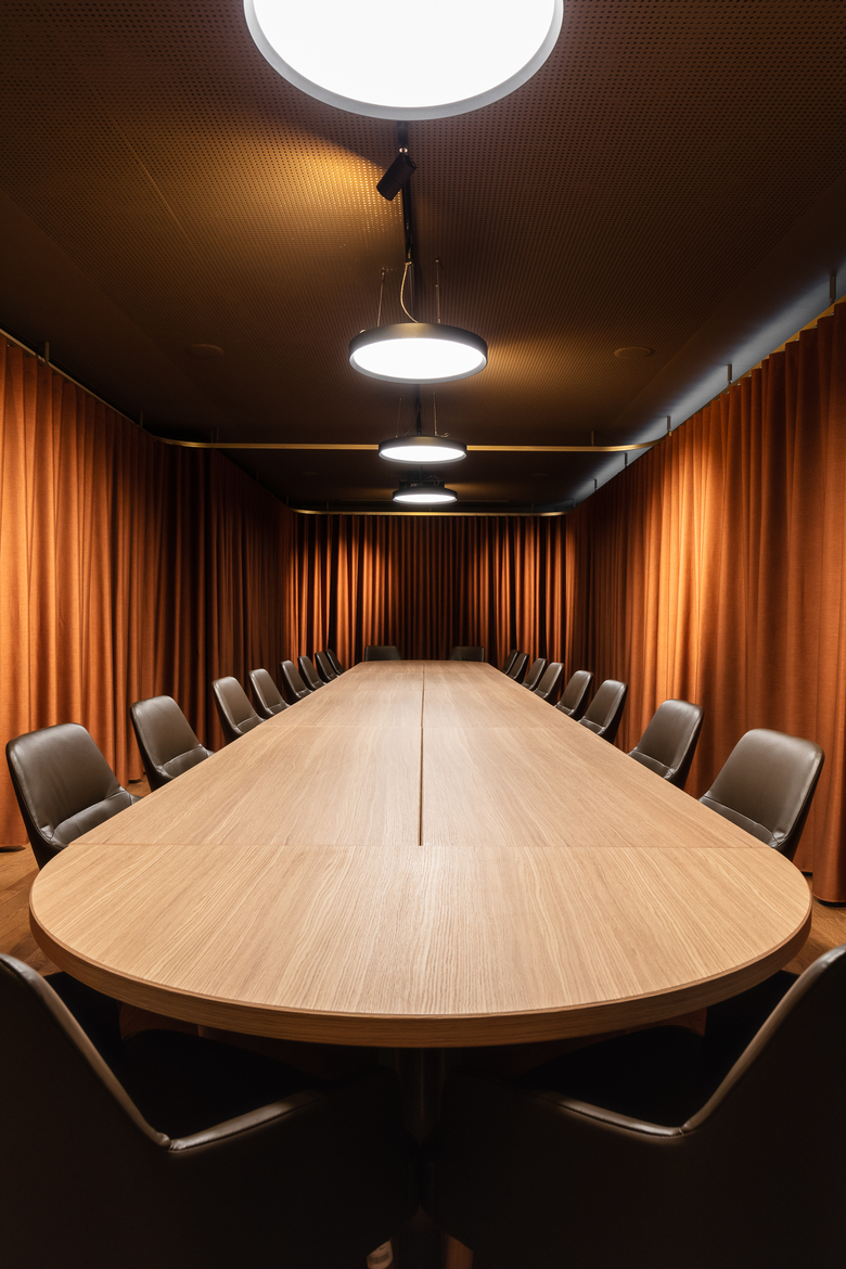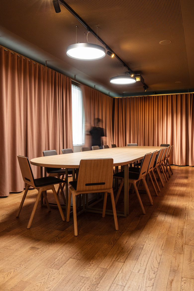 Aufgabe der Ständigen Vertretung in Brüssel ist es, als Botschafterin Österreichs in der Europäischen Union aufzutreten. Sie ist das Gesicht nach außen, ist Bindeglied und Visitenkarte eines ganzen Landes. Diese repräsentativen Funktionen sollten so gesehen auch in die innenarchitektonische Neugestaltung der Räumlichkeiten in Brüssel Einzug halten. Rundum adaptiert zeigen sie sich nun nicht mehr bloß dem Zweck verpflichtet, sondern künden darüber hinaus von gutem Geschmack, von traditions-reichem österreichischen Handwerk und schaffen im feingeistigen Zusammenspiel gleichzeitig eine weltgewandte, kosmopolitische Atmosphäre am Puls der Zeit. Zusätzlich zu den gestalterischen Maßnahmen wurden auch funktionale Erweiterungen vorgenommen: Die Konferenzräume lassen sich nun flexibel zu einem Großraum für Veranstaltungen unterschiedlichen Maßstabs zusammenschließen und dank eines elaborierten Vorhangsystems an die jeweiligen Bedürfnisse seiner Nutzerinnen und Nutzer anpassen. Wie bei den hochwertigen Vorhangstoffen wurde bei sämtlichen eingesetzten Materialien auf Qualität und Langlebigkeit gesetzt: Glattveredelter Stein, gebürstetes Holz, patiniertes Messing, verschiedene Textilstrukturen und feines Leder schaffen spürbare Kontraste, stehen für zeitlose Wertigkeit und unterstreichen den Charakter der Handwerkskunst österreichischer Provenienz. Die Österreichische Vertretung in Brüssel ist nun gleichermaßen Ort des konzentrierten Arbeitens und adäquat-eleganter Rahmen für kleinere und größere Gesprächsrunden sowie für repräsentative Anlässe – eine Visitenkarte, die sich sehen lassen darf.