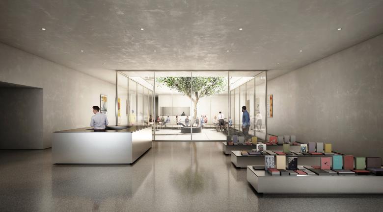At the street level, wide display windows welcome visitors to enter from the street into the museum spaces. The ground floor hosts the book shop and the café, which are characterized by the presence of a central patio that brings light to all these functions.