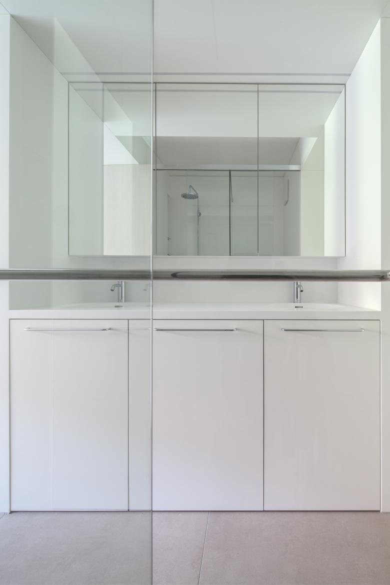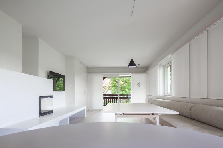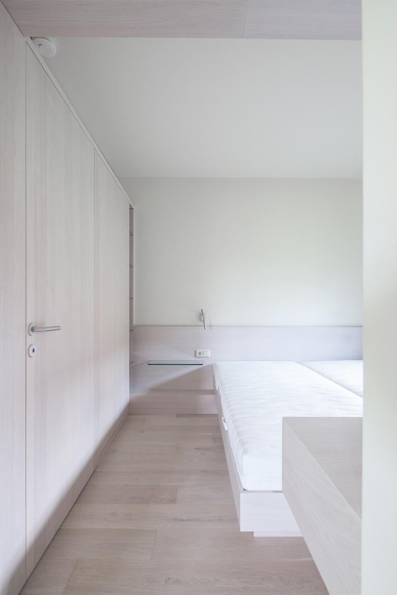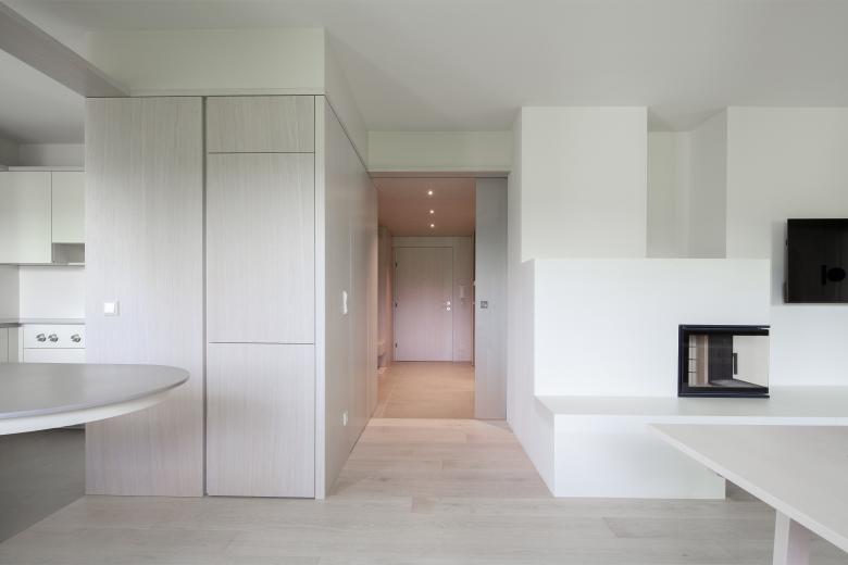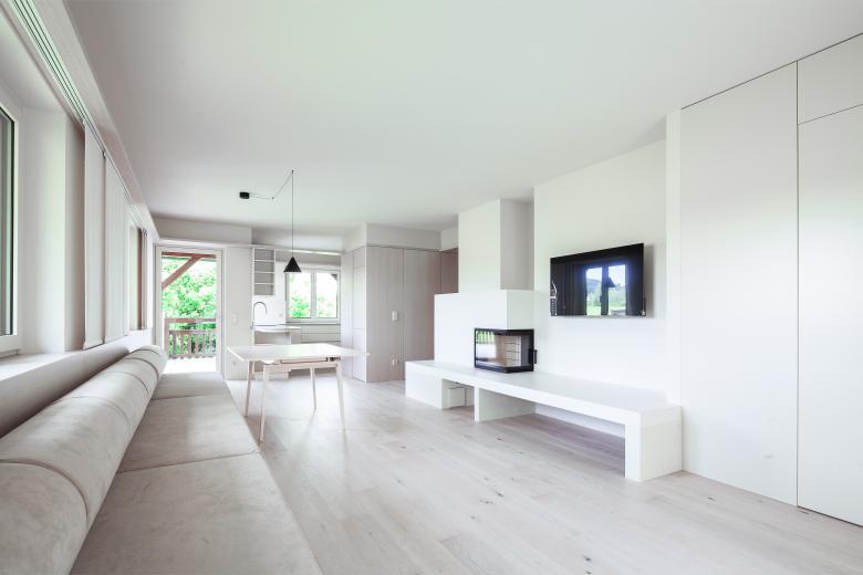 Durch minimale bauliche Änderungen und helle Einbauten wurde der Wohnung mit geringen Raumhöhen ein neues Erscheinungsbild gegeben.