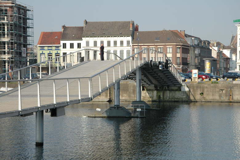 The ancient arsenal in the north of Gent lost its industrial glory and became abandoned over time. Situated close to the historic old town, the docks offer an ideal site to develop new urban life. According to studies about the accessibility of the docks the future three bridges and footbridges are very important to revitalize the new area. Since the docks are the only access by waterway to the old town, the pass through for boats has to be granted. DFA provided a cautious and elegant proposal for a footbridge. The industrial and maritime background of the area is reflected in the selection of materials, constituting steel with a wooden deck. With its simple form, resembling the extension of the quay wall, it seems to dock.