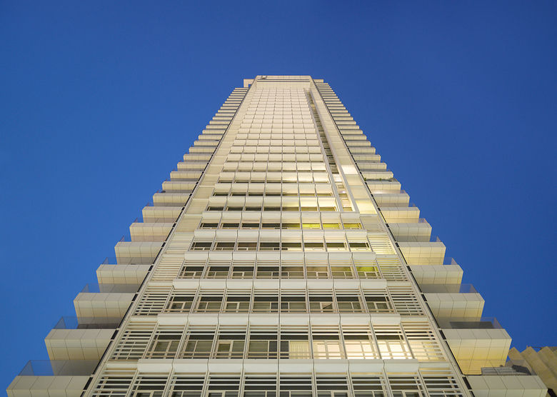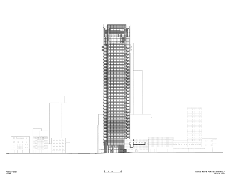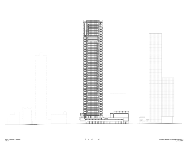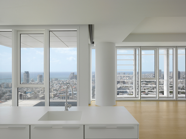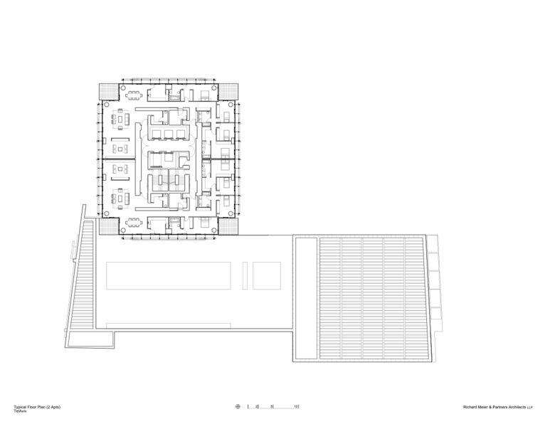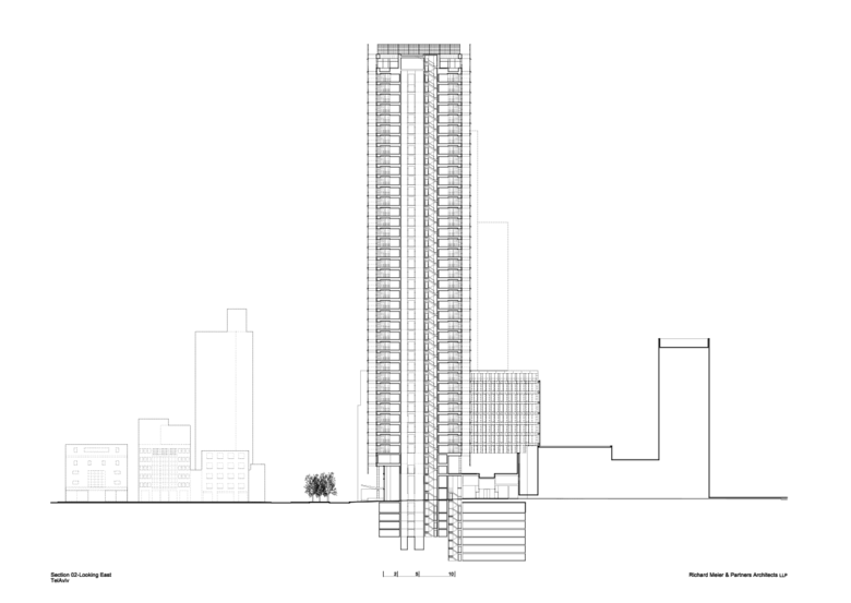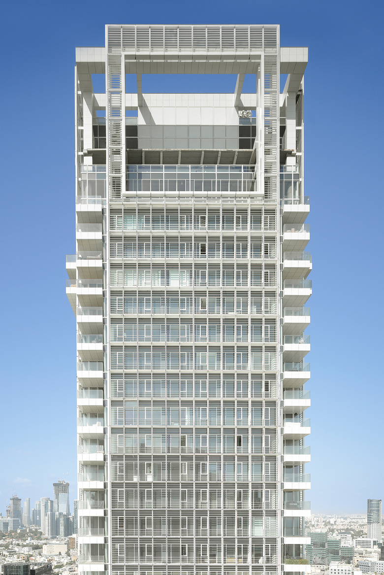 Richard Meier & Partners has completed its first international residential tower and its first project in Israel. The new Rothschild Tower is inspired by the scale and Bauhaus design principles of its neighbors in Tel Aviv’s White City. The building’s image of lightness and transparency is the result of a double layer façade comprised of clear glass with a delicate white louver screen inspired by traditional Middle Eastern clothing and prominent corner balconies derived from the low to mid-rise neighboring buildings. A large “urban window” frames the western views to the sea from the Penthouse terraces.