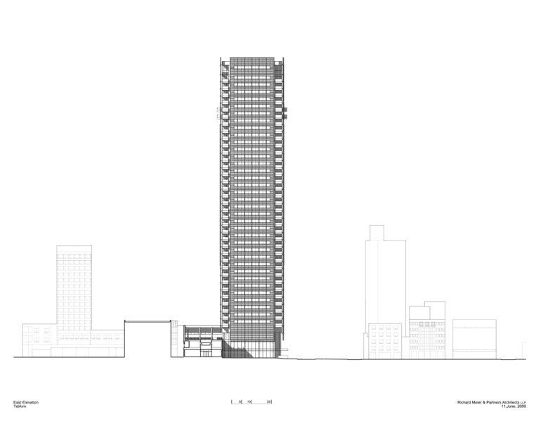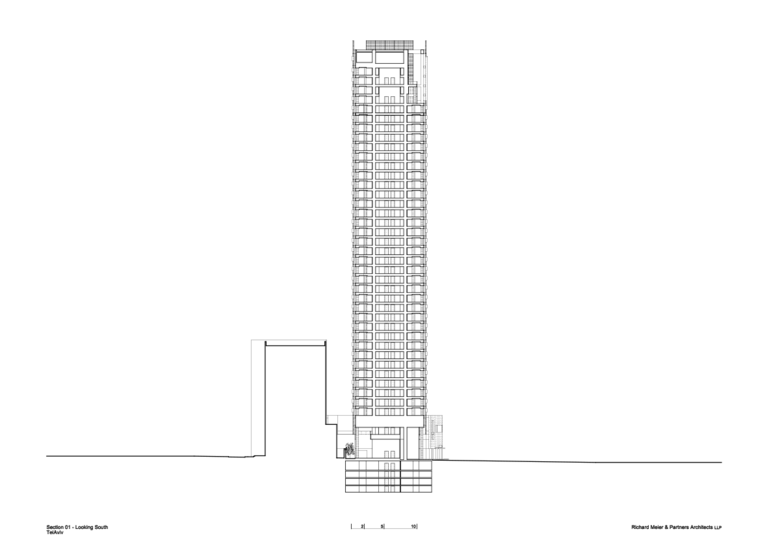The new residential tower is anchored to Rothschild Boulevard in the heart of Tel Aviv’s White City, a UNESCO World Heritage Site. The neighborhood is filled with thousands of Bauhaus buildings designed by German Jewish architects who began immigrating to Israel before WWII. The city holds the world’s largest concentration of Bauhaus buildings, 4,000 in total, dating mostly from 1931 to 1956, but also encompassing subsequent designs that were built as a tribute to the style.