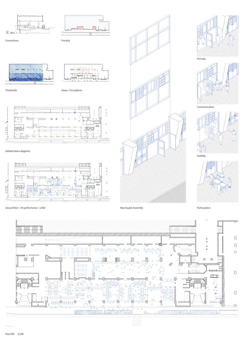 The project takes the form of three complementary books dealing with temporary use as a "new" right to the city. Their comments choose to be critical, political, practical and claiming. Sometimes abstract, sometimes concrete, in no case do these books claim to be a single and unchanging truth. The first volume takes the form of a critical writing. It gives a clear picture of contemporary societal issues related to temporary use. It attempts to demonstrate that the reflection around these opportunities emerged in the 1950s in the writings of Henri Lefebvre, David Harvey, Yonna Friedman and Guy Debord and the Situationists. It shows the importance of the concept of temporary use in the future transformation of the city and of society. The second volume is rather a practical manual. It helps to organize a temporary occupation. It offers a serie of answers to the questions that punctuate the process. It provides tools for architectural reflection, so that the occupants can design their project in all its dimensions: spatial, urban, social. At last, it questions the architect on his place in such a project. Finally, the last volume offers a practical application of the theoretical concepts of the first two books. It deals with a concrete act. The call for projects for the temporary use of the Tri Postal in the Gare du Midi in Brussels that had been launched in mid-March 2019. With this competition came the unexpected opportunity for us to confront our ideas with the urban reality of Brussels, on an emblematic building of more than 10,000 m2, and with a participative project stemming from citizen programming in the complex context of an international station. The Tri Postal is now open to the public, because of to the incredible determination of the “Communa” ASBL (non profit organization), with whom we were fortunate to share. Thus become a living reality and took shape our social views and our spatial and political proposals in this development.