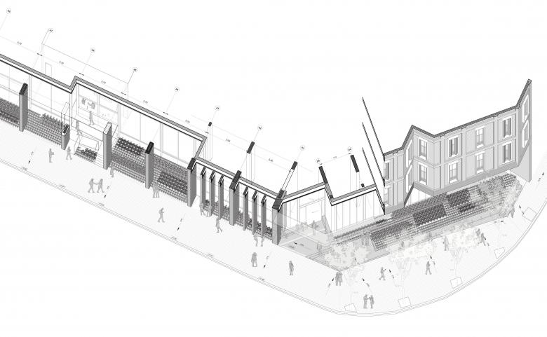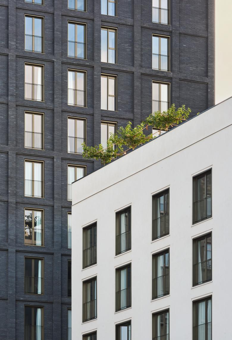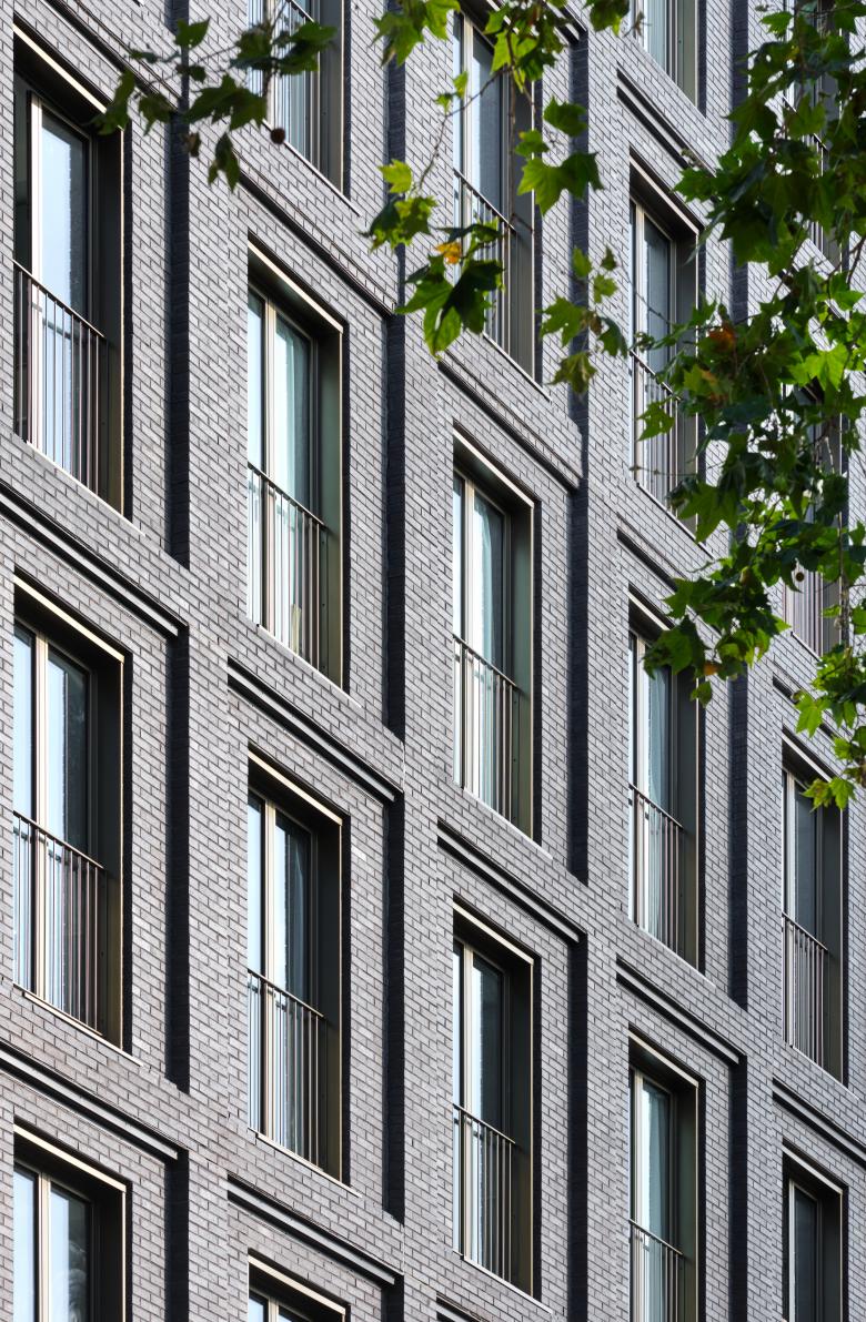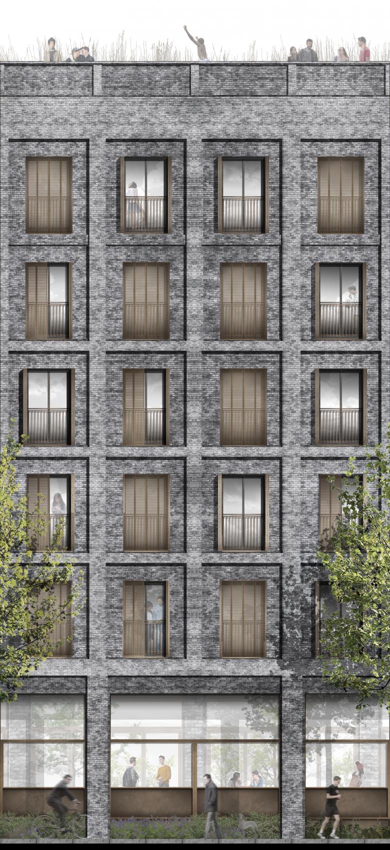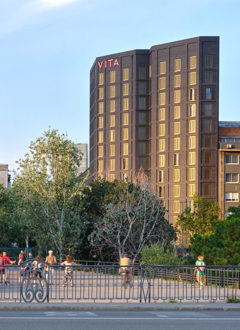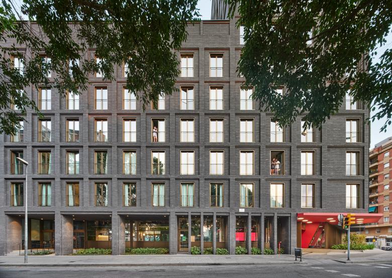 The multiplicity of types is transferred to the configuration of the façade, which seeks to express both the systemic repetition of the programme and the difference of situations. The façade seeks to evoke, in a modern and deliberate way, the serial and textured semantics of the manufacturing elements of English origin such as Ca l'Aranyó, expressing the elements of repetition of the programme in dark masonry, recalling the cultural transfers that gave the Catalan Manchester its name as an act of conviction towards the context. Its durability, low maintenance, climatic conditions (ventilated façade) and good ageing are the first measures of sustainability: made to last.