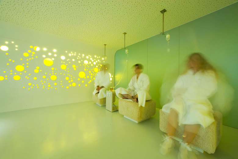 Frisch, hell, einladend - so präsentiert sich der neue Wellness-Bereich des Lanserhofs, unweit von Innsbruck in den Tiroler Bergen gelegen. Die boxenartig losgelösten Behandlungsbereiche laden in einer sinnlichen, introvertierten Atmosphäre zum Entspannen ein. Das veränderbare Licht wird in der schlichten doch eleganten Umgebung zu einem szenischen Element - spannend im öffentlichen Bereich, einfühlsam in der Privatheit der Behandlungsräume.