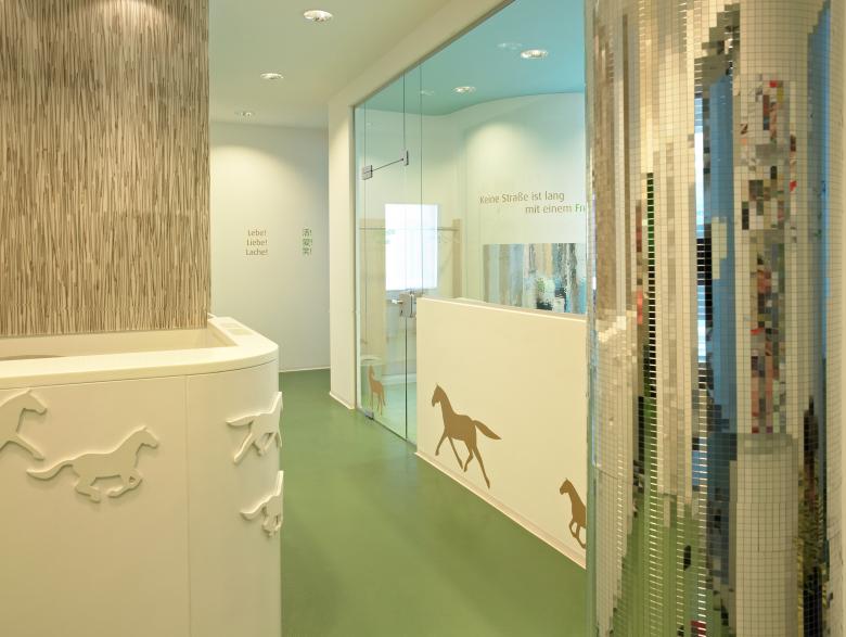 A medical practice for a paediatrician and a TCM doctor represents a balancing act: on the one side children and life in all its intensity and on the other, adults and peace and quiet. The practice is distinguished by its ingenious layout and the use of innovative materials. Clear shapes and colours paired with individual details round off the draft. Fresh colours define the overall impression of the practice. In contrast soft, natural colour tones characterise the TCM area, exuding peace and quiet. The individual graphic design extends through the whole space. In addition, the high hygiene requirements are met to a particular degree without appearing sterile. Both the needs of children and young people and also adults are met in a convincing overall appearance.
