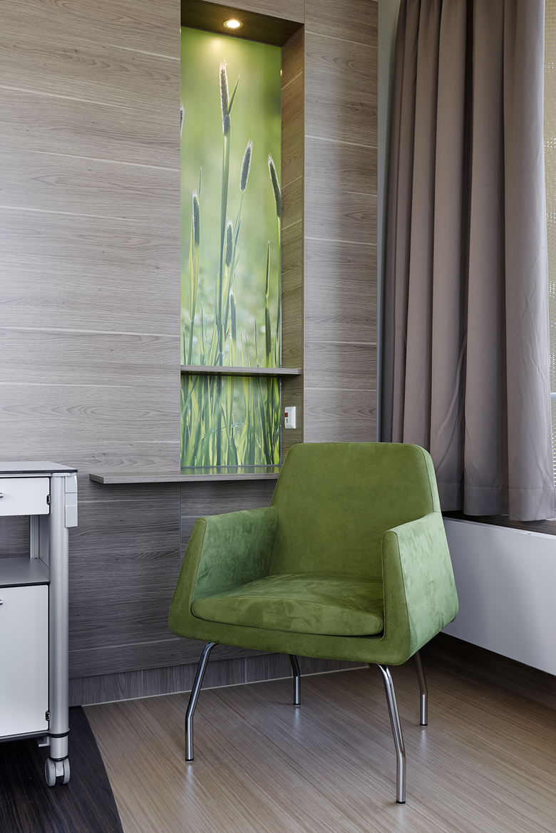 Comfortable and elegant, with relaxed wellbeing-atmosphere and a splash of modern design attitude, these private-patients rooms apply to patients needs. Simultaneously providing an attractive working-place for staff, whereas the hospital’s medical competence is underlined. Material’s quality and detailing provides more than hygienic demands.