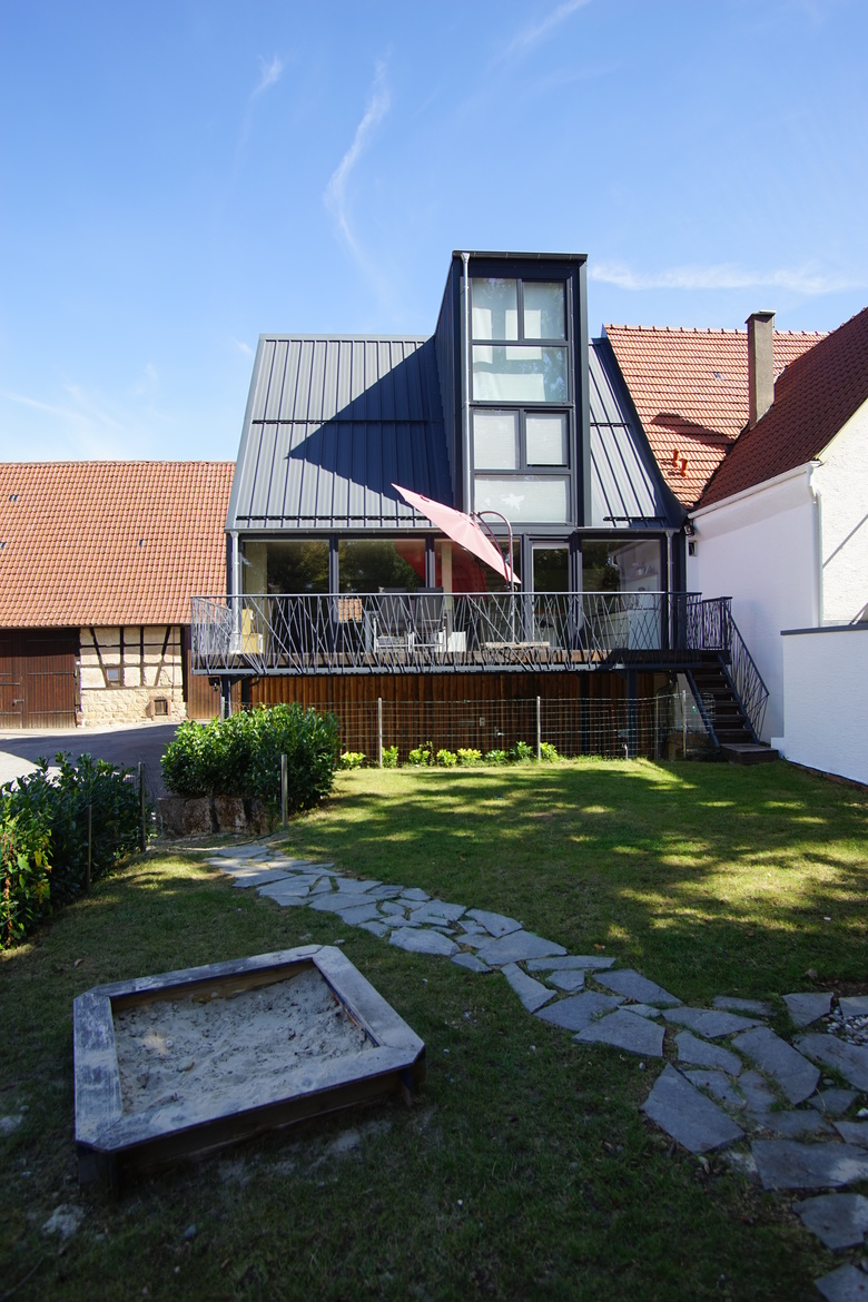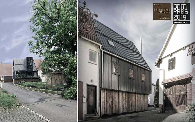 Die Anordnung des alten Bauernhofes wurde nachverdichtet und neu formuliert. Der wertvolle Ortscharakter wurde erhalten, das angrenzende Neubaugebiet musste einen anderen Weg gehen.