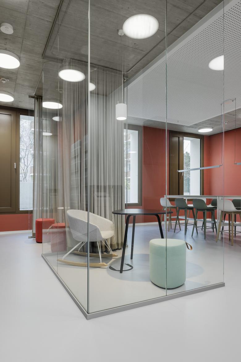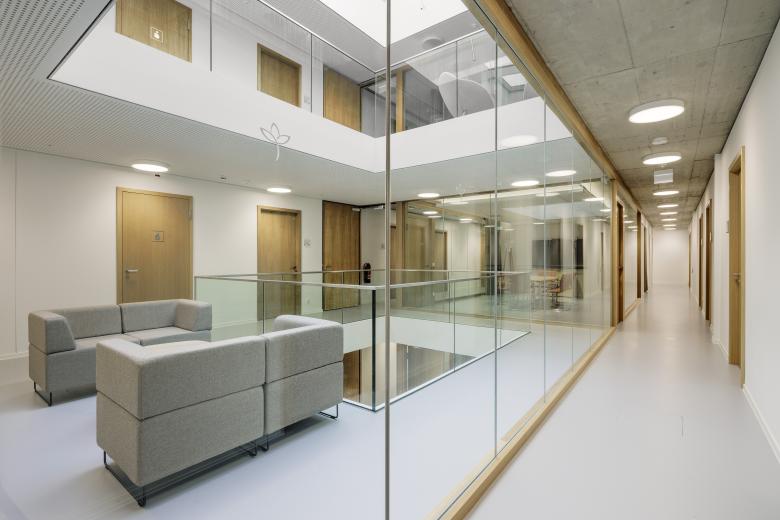 The aim of the energy concept is not to exceed a total primary energy requirement per square metre of usable floor space of 100 kWh per year, while ensuring the greatest possible comfort and the best possible room conditions. Thanks to its compact form and monolithic masonry façade, the building is very energy-efficient.