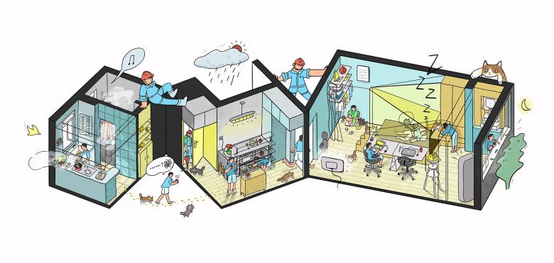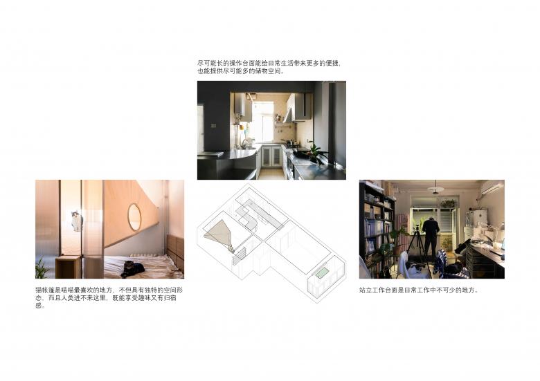 We moved with cats from Beijing to an appartment in Shanghai built in the 1980s. The living space shrank from 60 square meters to just 40, yet We hope that we could design the interior based on the lifestyle, that we had grown in Beijing. Together with the cats, we began adapting to this new and smaller home.