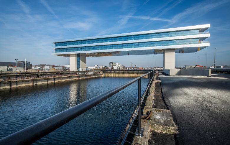 The new head office was designed as a valuable, new addition to Cordeel’s business premises and provides a view of the entire business site on the one hand and of the centre of Temse and the Scheldt on the other.