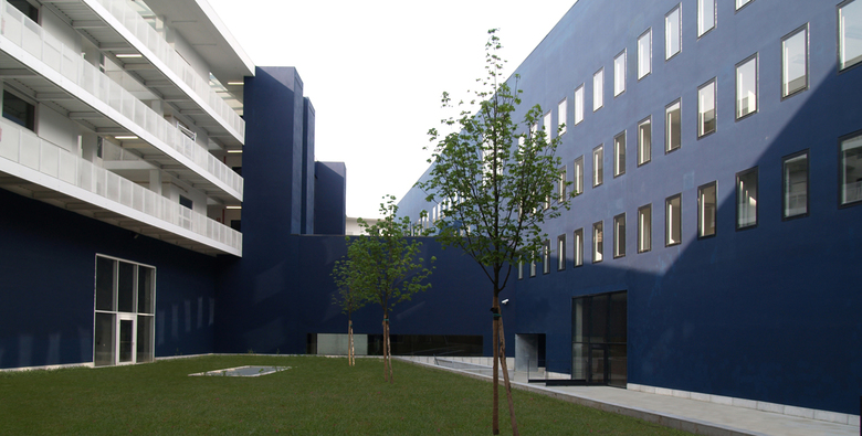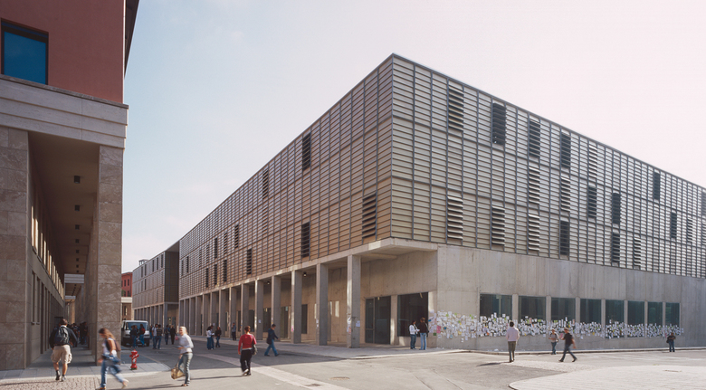 The students’ university housing in the former Fiat area at Novoli, Florence, was designed to adapt to the constraints of the brief - the perimeter of the lot, the alignment, the building height - and to use them as a spring¬board for original compositional and typological solutions that have produced a articulated, light-filled interior landscape inside severe walls. Despite the double-courtyard layout the building is far from inward-looking and imposes order on the wider context: the pas¬sageway that cuts crosswise through it is seen as a "city gate", a way through the block and a focus for communal activities, as well as access to the students' lodgings. The twin themes of "urban silence" and "constructed mass", borrowed from historical city's fabric but updated to reflect today's different formal and plastic awareness, are evident on the solid though not im¬penetrable exterior facades.