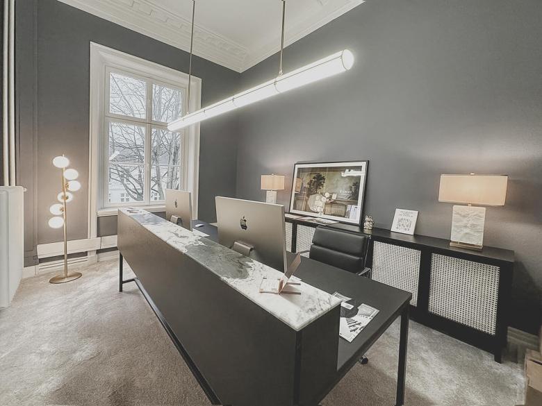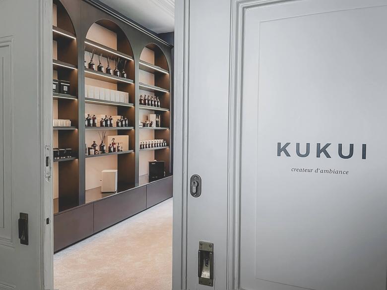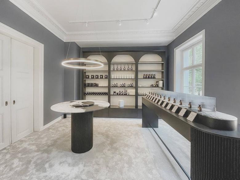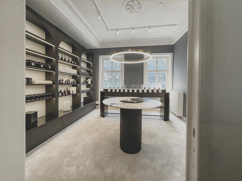 Eingebettet in einen charmanten Altbau eröffnet der neu gestaltete Store in Hamburg die faszinierende Duftwelt von KUKUI. Durch die Verwendung dunkler Materialien, insbesondere des zeitlosen Natursteins Marmor, entsteht eine Atmosphäre von zeitloser Eleganz. Diese Materialwahl unterstreicht nicht nur die hohe Qualität der Produkte. Sie verleiht dem Raum auch eine ästhetische Note. Besonderes Augenmerk wurde auf die Gestaltung der Regale gelegt, die speziell für die Präsentation der KUKUI Produkte in einer perfekten Inszenierung entworfen wurden. Die strategisch platzierte Beleuchtung hebt die Flakons und Produkte in den Regalen hervor und schafft gleichzeitig eine freundliche und einladende Atmosphäre. In diesem Raum wird die Inszenierung der Düfte zum zentralen Element.In der Innenarchitektur spiegelt sich die von Purismus und Stil geprägte Designphilosophie von KUKUI wider.