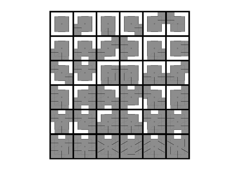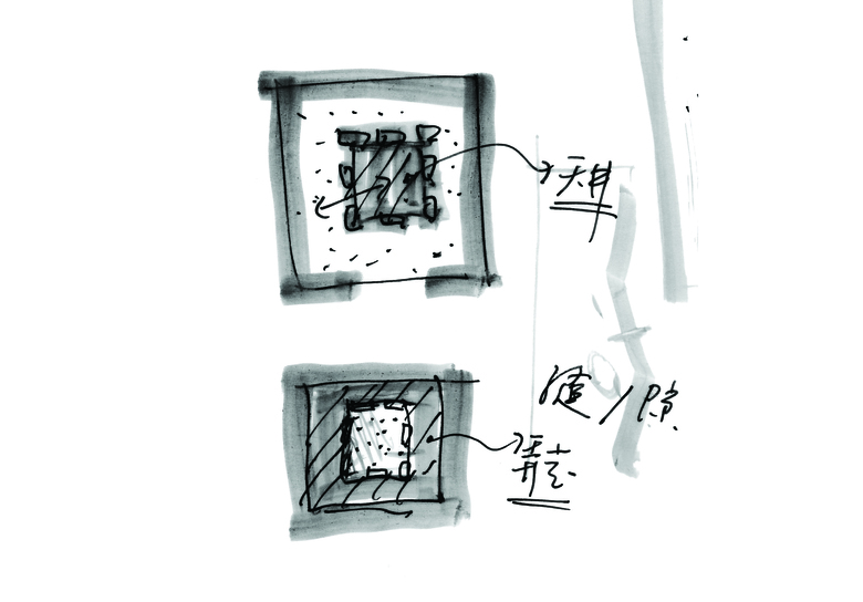 So a central courtyard is transformed to a solid form with two levels. The cube has different openable panels to open and to expand the space for display. According to the combinations of the panels the gallery wins the maximum flexibility of display.