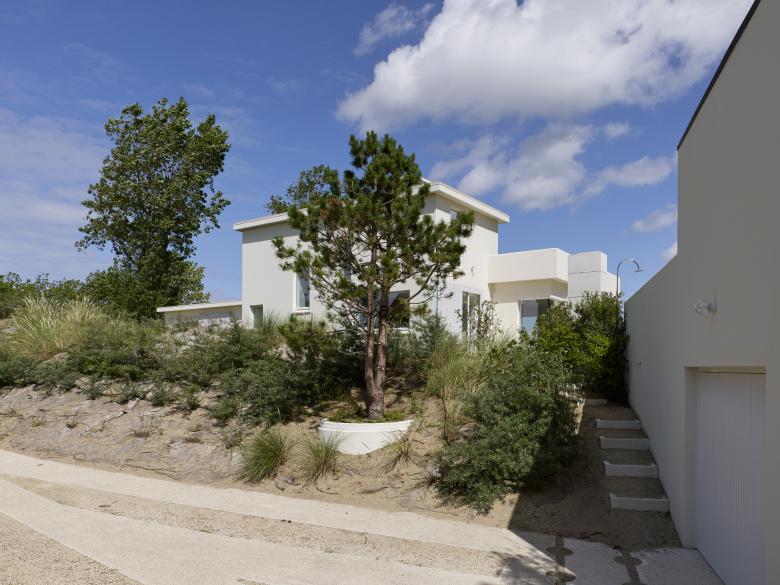 The garage, which has a direct connection to the lift, has been hidden "in the dune".