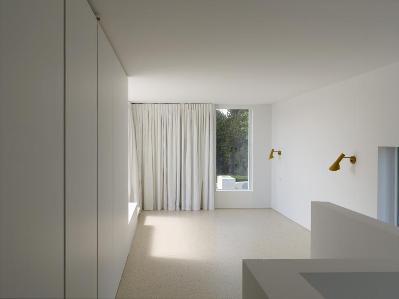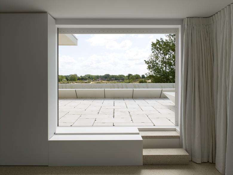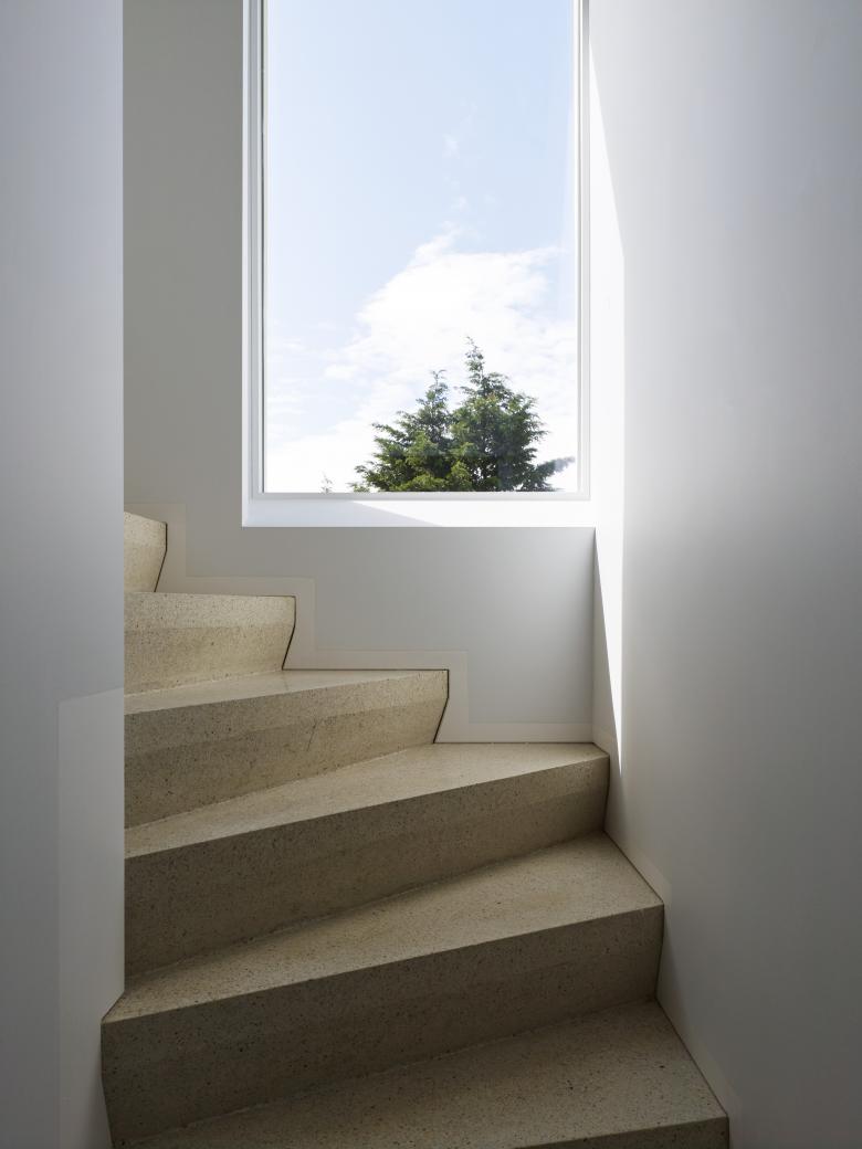 To fortify the unity with its surroundings, sand-colored concrete floors were provided both inside and outside, bringing the dunes inside the house.