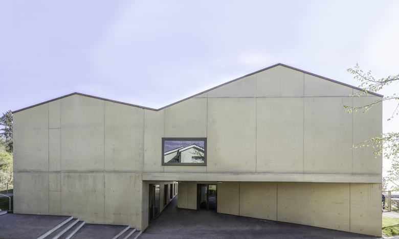 Der Altbau bleibt sichtbar und wird zusammen mit dem Neubau zu einem Ganzen geformt. Die gleichbleibende Weiterführung der Dachgestaltung wird auf dem gesamten Schulareal als Einheit erfahren. Der Neubau wird aus dem Altbau heraus entwickelt. Durch die gegebene Innenstruktur des Altbaus entstehen drei Anschlussstellen. Dank den Passerellen zwischen Alt- und Neubau funktioniert das Schulhaus als Gesamtwerk. Die Passerellen generieren gedeckte Aussenbereiche, welche zudem die Eingänge definieren.