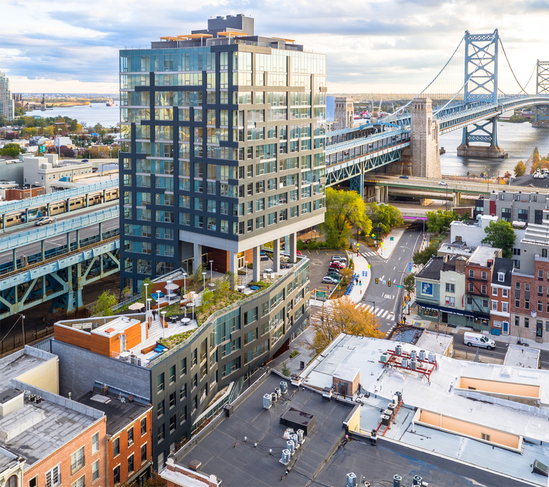 Philadelphia’s first high-rise LEED Gold luxury apartment building, ‘Bridge’ offers 146 apartments with 10 percent affordable units. Amenities include spectacular city views, 8,000 SF of green roof terrace, gym, storage and parking.