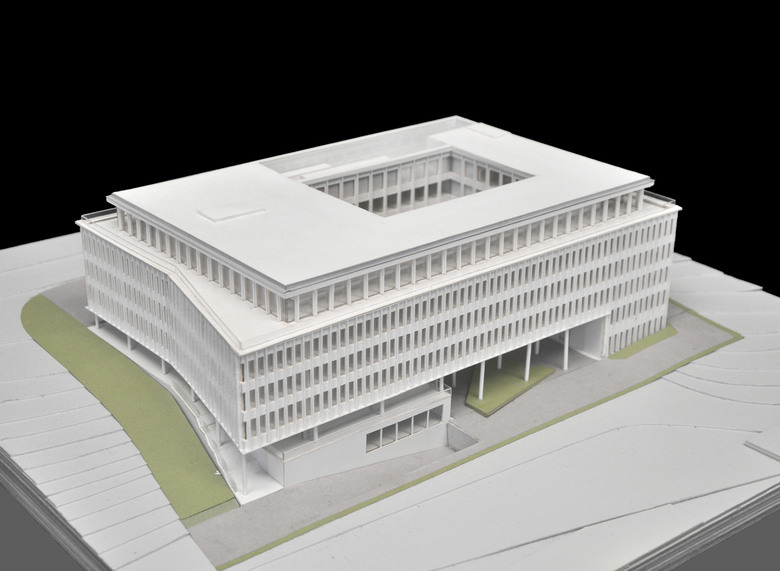 The Luxemburg finance supervisory office (CSSF) is a prospering authority with continuously varying space requirement. The planned office building replaces the current building of CSSF on Route d’Arlon. The new seat of the bank supervisory office comprises a GFA of approx. 14,500 m² (above ground) and provides office space for 650 workplaces, a canteen, a gym, a library and a conference area. The basement will host storage room and parking spaces. The surrounding of the future domicile is characterized by the very busy Route d’Arlon, large solitary structures alternating with residential blocks and the view of the topographically varying landscape. The shape of the building evolves directly from the contour of the plot and defines clear streetwalls towards Route d’Arlon and Rue des Aubépines. The canteen and conference area open up into a high-quality large inner courtyard that is cut out of the volume and opens up to the south. The flexibly configurable office spaces on upper floors encompass the central courtyard in a circular manner. The homogeneous, vertically structured façade of light stone slats makes the building appear closed when viewed from an angle and contrasts the glazed and welcoming foyer, which is set back with its facade at the entrance situation. Transparency and discretion interact. The technical concept of the building pursues the goal of high performance with maximum room comfort while simultaneously minimizing the energy required and energy losses. This sustainable building founds on smart usage and control of daylight, concrete core cooling and efficient heat recovery.