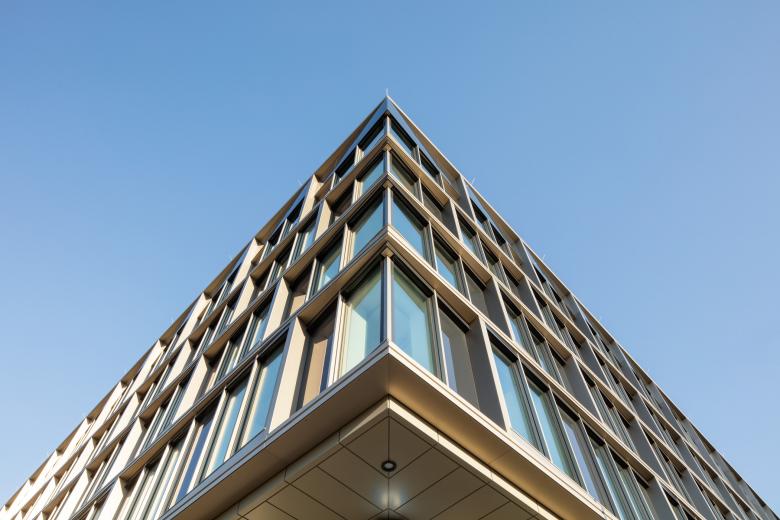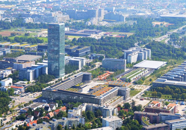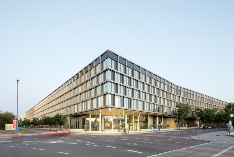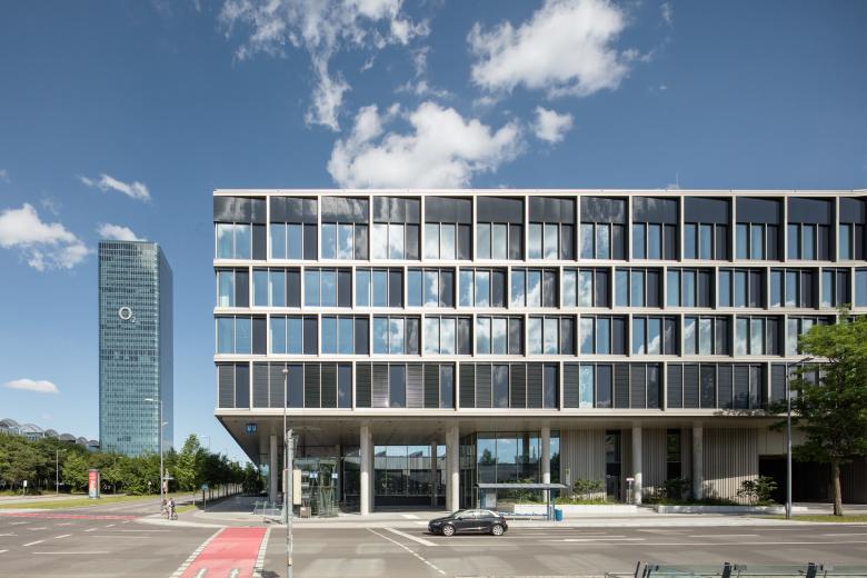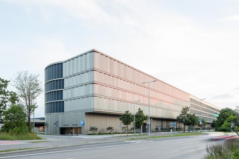 A future-oriented bus depot for approx. 200 buses with a shell development has been built on the approx. 36 hectare site in the Moosach district of Munich. The surrounding area is characterized by the wide thoroughfare of the Georg Brauchle Ring. The objective of the approximately 25 m high office building with the integrated high-rise parking garage is to shield the interior from noise pollution. The new rectangular large-scale design blends well into the surrounding predominantly orthogonal and large-scale structures. The six-storey new construction along the road runs parallel to the industrial buildings and maneuvering areas of the bus maintenance depot. The hall-like widening of the northwestern corner of the building is the architectural highlight and serves as the address for the new office building. The plan calls for the administrative offices of the bus maintenance depot to be housed on the first and second upper levels. Additional office space above may be made available to third-party tenants. Inside atria and vertical service/ access areas provide structure to the building. Grass will be planted on all roof areas. The 400 m long scale-like facade “decelerates” the elongated structure. Depending on utilization, the individual building sections will have various facade types of a highly recognizable “family of facades”. For example, the office facade is characterized by diagonally arranged anodized aluminum window elements of various dimensions, which are diagonally offset. The floor-level windows ensure maximum daylight in the interior. Uniformly anodized aluminum frames and the continuous metal ledges reinforce the overall design principle.