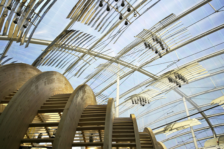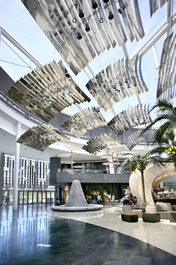 Regional shopping mall in a residential area to the southwest of Madrid, which will promote the expansion and improvement of the infrastructure in the area. Islazul has a public vocation: it is a place for gathering and social relations, an island conceived from respect for the environment and bio-climatic architecture. The project emphasizes this idea with volumes of curved profiles and rolling façades to define large spaces that are discovered as they are visited; bright spaces with natural elements and vegetation that create peaceful environments and walkways. One of the important elements of the building is the transparent ETFE roof, a state-of-the-art material allowing for large lightweight structures and climate control of the interior.