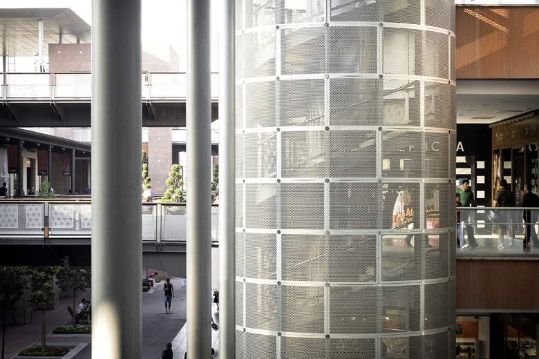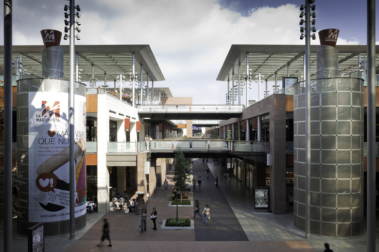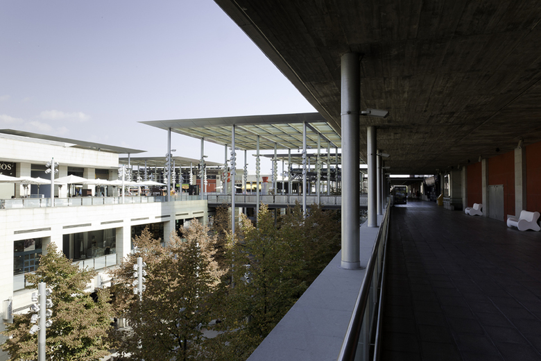 It is an innovative, urban Mediterranean mall; open and connected to the urban pedestrian section, with large and varied exterior public spaces covered with pergolas. The staircases become sculptural elements together with the street furnishings. It evokes a certain appearance of the area’s past with the new chimneys, the metal cylinders, canopies, bridges and walkways on different levels that extend the street and identify the place from a distance.