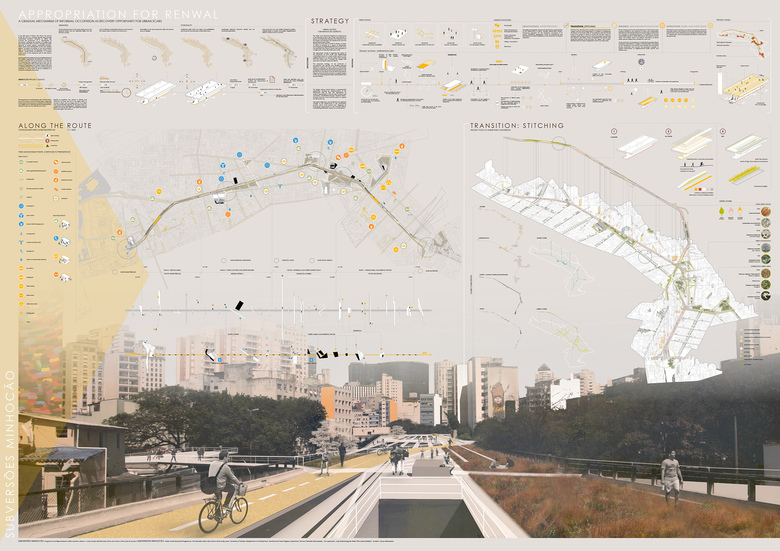 "The Minhocão viaduct is a decay major cause of São Paulo downtown causing a physical and social barrier, pushing the population to an appropriation process. Through a step-by-step action plan, this informal mechanism is proposed as the starting tool for the urban scar renewal as a public space."