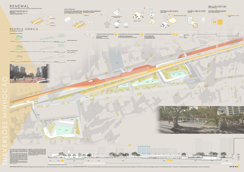 The project is developed in order to preserve the viaduct character as a walkway through the buildings and a flexible meeting place. These main factors of its current operation gives the basis to transform a habit into an opportunity of improving the whole city downtown, relating Minhocão to other neighborhood public spaces to be redeveloped and reconnected.