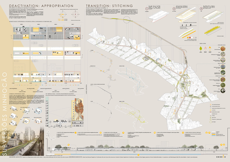 Rather than knock down a structure that can be recovered, due to its current informal function, it may be more effective to take action on the connections between the Minhocão and the context, on the possible supporting functions and on the interventions toning down the physical impact of the property.
