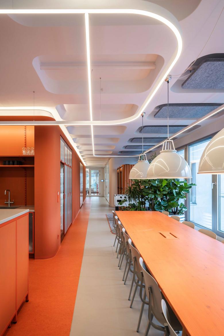 The “ADA 1” complex, designed by architect J. Mayer H., stands out for its "floating eyes" in the form of protruding windows on the facade and cut-outs in the concrete ceiling. For the new floors in "ADA 1", BAID creatively repurposed the ceiling voids yb integrating them with Lindner MUTE+® sound absorbers. These absorbers, available in three different sizes and colours, were tailored to the existing architecture and incorporated into workspaces, meeting rooms and open-plan lounges and break areas.