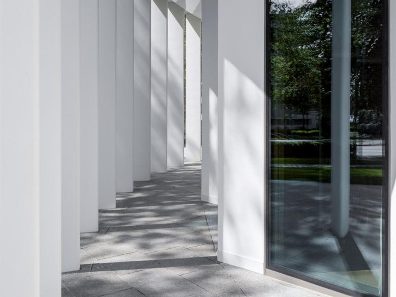 Due to the sophisticated design and the desire to source everything from a single source, Lindner Fassaden GmbH from Arnstorf was commissioned as general contractor for the glass-ceramic facade. Lindner worked with long-standing, competent partners for the various interlocking designs. The entire planning and project management was with Lindner and was worked out down to the last detail. It was one requirement that the curtain-type and rear-ventilated facade did not need any massive supports.requirement that the construction of the curtained and ventilated facade does not require massive steel support. This is made possible by the static design of the corridor walls and the radiating outgoing wall bulkheads, which play a literally supporting role. This gave the necessary stability to implement dynamic turns and radii of up to 22,000 mm. For the ceramic facade, Lindner installed a total of 1,200 m² of white-glazed Longoton facade panels from Moeding, with a panel height of 40 mm and 614 mm, fastened with the appropriate Longoton Rapid System. The substructure with plate holders was pre-assembled ready to mount the tiles without tools. As there was no mandatory order of assembly, the work at The Fontenay could be carried out with considerable time savings.
