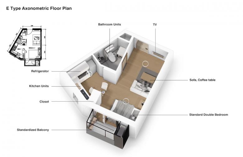 The project’s 4000 residential units are comprised of six general typologies and three ultra-low energy consumption typologies, spanning areas of 40 square meters, 50 square meters, and 60 square meters. Light-coated board is used as the partitions between the rooms, enabling ease of maintenance and flexibility for decoration by residents.