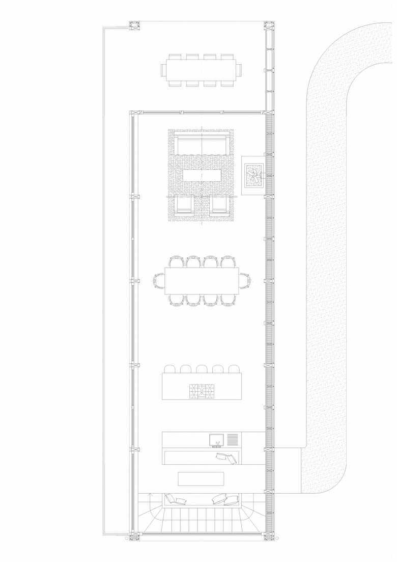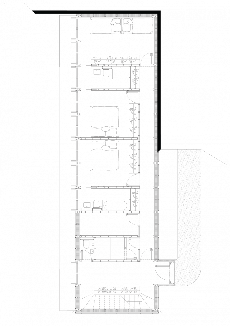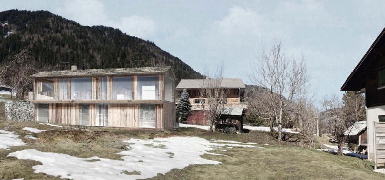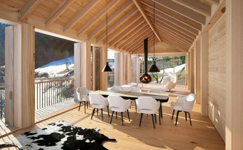 With its elongated shape, this chalet in the French ski resort of Portes du Soleil fully takes advantage of the site. It completely opens up towards the sun and the views over the valley. A very generous and bright space is situated on the upper floor, all three bedrooms, the adjacent bathrooms and a sauna are located below. Wooden interiors and the visible roof structure give a familiar Alpine feeling to the contemporary and simple layout.