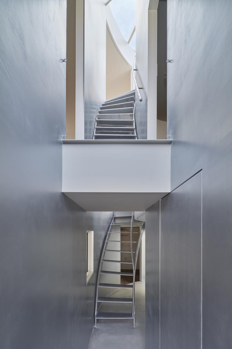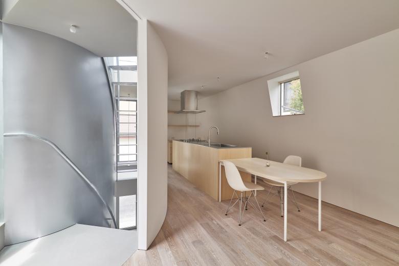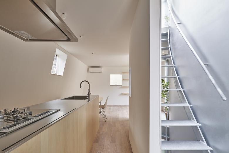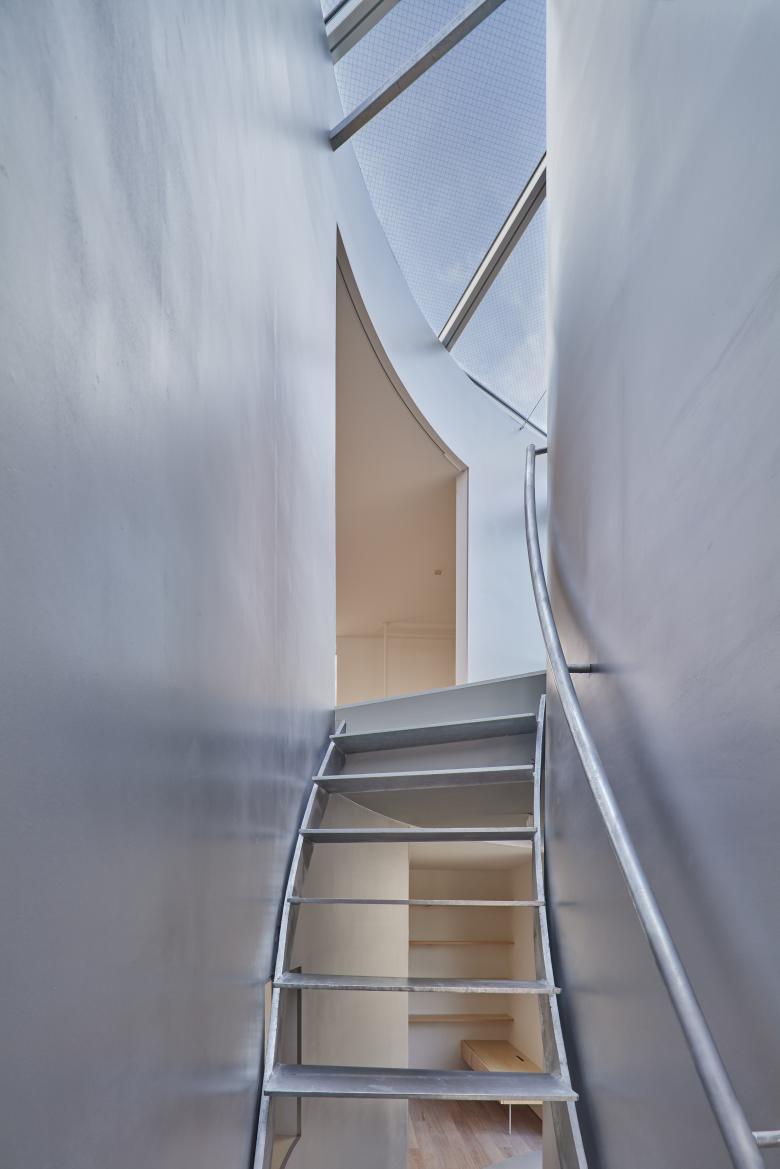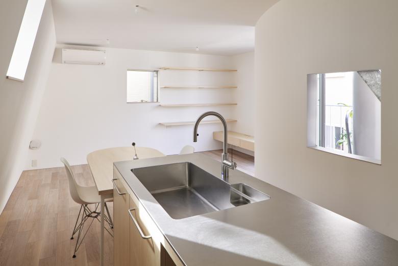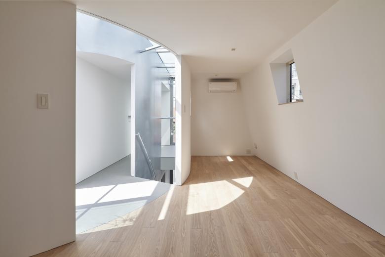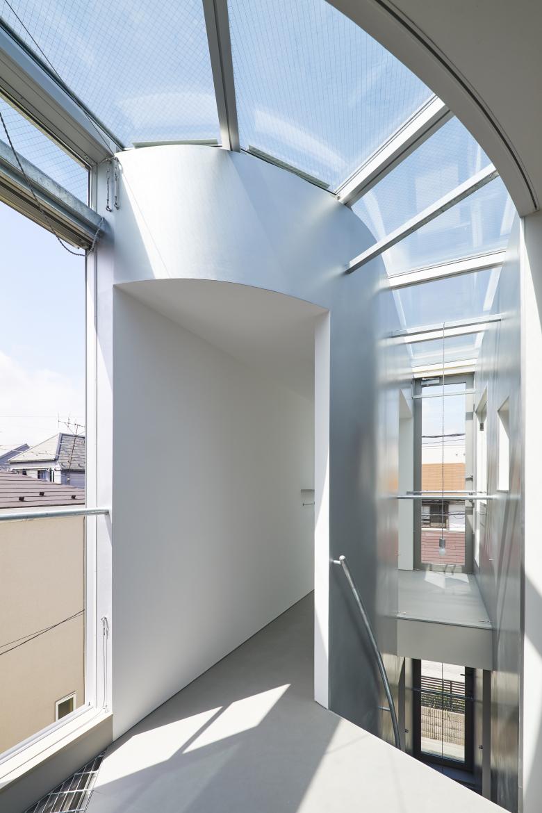 The site is a small subdivided lot into residential areas in the city center and surrounded by houses. By connecting the road on the north side of the site - the house – and the adjacent pathway on the south side of the site with a valley as if to scoop up trivial scenery, and by connecting these while incorporating it into the house, the urban space and residential space become ambiguous and scoops up elements scattered in the city.