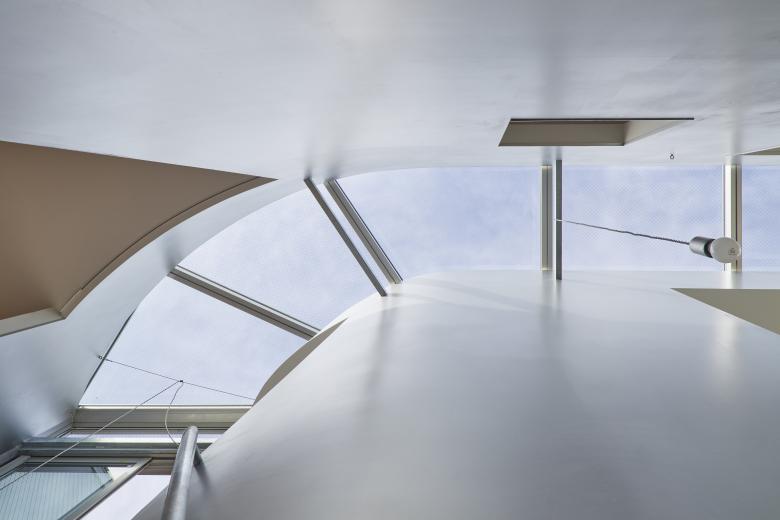 By opening all those windows in the valley space, which is normally part of the room, the valley and the outside become one, and the slabs floating in the valley converts to balcony. The use of the valley will change along with the scenery.