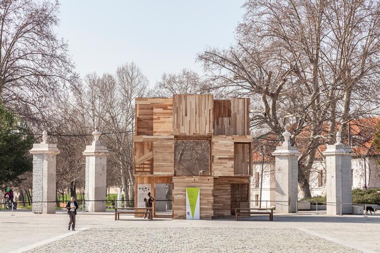The fourth configuration of MultiPly, a pavilion made from twelve cross-laminated timber (CLT) modules, was on display in early February as part of the Madrid Design Festival, provoking visitors to reconsider how buildings and cities are constructed.