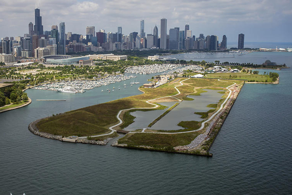 Northerly Island, a park designed by Studio Gang Architects and SmithGroupJJR for the Chicago peninsula that formerly served as Meigs Field, opens to the public on Friday, twelve years after Mayor Richard M. Daley closed the airport.
