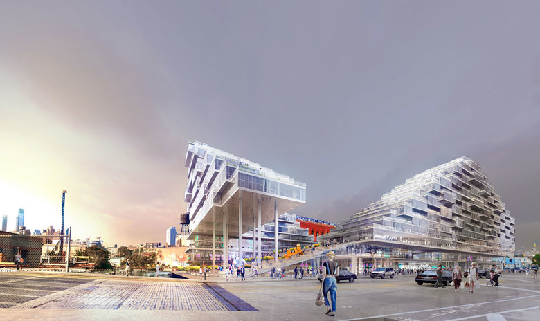 The challenge here was to encourage the theme of mixed use community while breaking down the scale of development into something engaging. The shaping and forming of the building at the Gowanus Mixed Use Development---it’s cascading nature, up and down like a metropolitan mountain---makes it both appealing and accessible from street level. The hope is that designs like this will create truly mixed use experiences that invite the general public into communal spaces on different levels, each fostering activities in business, arts, culture, and residence.