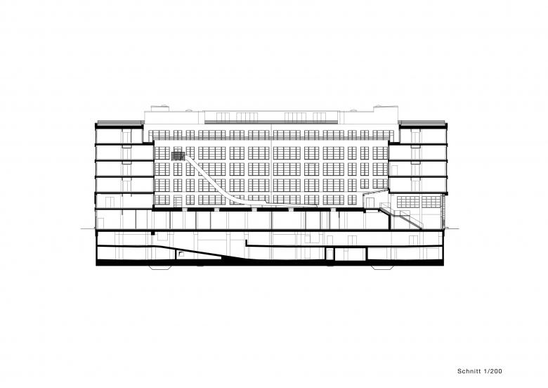 Das Foyer und der Innenhofgarten bieten Raum für alle Nutzer und übernehmen eine wichtige Verteilerfunktion im Gebäude. Als besondere Zugabe gibt es eine spektakuläre 10m hohe und 31m lange Rutsche vom vierten Obergeschoss in den Hof. Funktional ist das Gebäude für einen Einzelnutzer oder mehrere unterschiedliche Nutzer ausgelegt. Die Bürogeschosse zeichnen sich durch frei teilbare Flächen und eine großzügige natürliche Belichtung aus. Mieteinheiten lassen sich von 400 m² bis 3000 m² je Geschoss zusammenschalten.