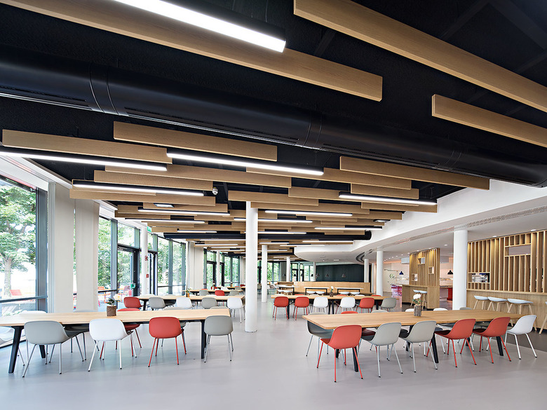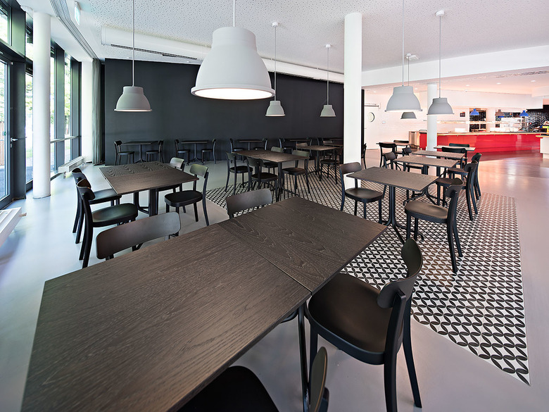 Als Bestandteil des Gesamtprojekts Microcity, der Revitalisierung des ehemaligen Microsoftstandorts in Unterschleißheim, gestaltet Oliv Architekten die Mitarbeiterkantine neu. Auffallend ist neben der anspruchsvollen Innenarchitektur im skandinavischen Stil die Neustrukturierung in Gastraum, Bistro und Kaffeebar. Die halbrunde Form des Bauteils B/C gibt die Grundstruktur des Entwurfs vor. Das Herz der Kantine - die Ausgabestation - befindet sich im Zentrum des Halbkreises. Die Deckengestaltung, das Beleuchtungskonzept und die Möblierung sind radial um diesen Mittelpunkt angeordnet. Helles Holz, schwarzes Metall, grauer Epoxidharz, lasierte Fliesen und auffällige Leuchten lassen die Mitarbeiterkantine in neuem Glanz erstrahlen.