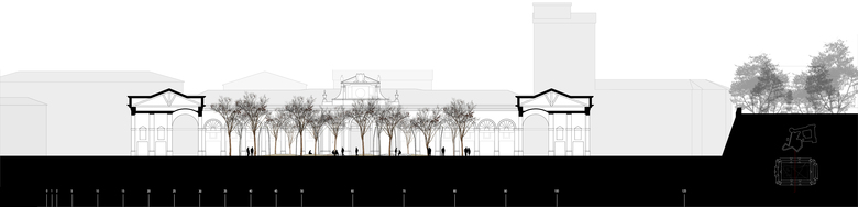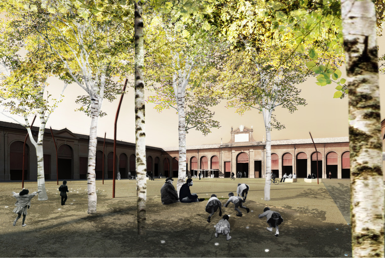Pavaglione is a huge 18th century quadriporticus located in the heart of Lugo (Italy). Historically, its central courtyard housed one of the biggest markets of Northern Italy along the Silk Road. By the beginning of the 20th century, when Pavaglione gradually lost its commercial and community function, the courtyard turned into a vast, marginal “backyard” despite its downtown setting and architectural value. The project aims at renewing the Pavaglione’s internal courtyard, redefining its urban role, in order to enhance its extraordinary architectural quality and generate a more vibrant public space.