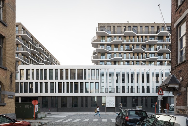 Cadiz is a mixed-use project with more than 26,000 m² of houses, a healthcare centre, a hotel, offices, and shops on a spacious block in the Cadix neighbourhood. The task at hand was complex: to create a large number of residential units in a deep block, while ensuring that each individual home still had sufficient light and a view. At the same time, the project had to bring life to the new city district. The architects found a way to untangle this knot. The result is a remarkable block with a typology that is unprecedented in Belgium.