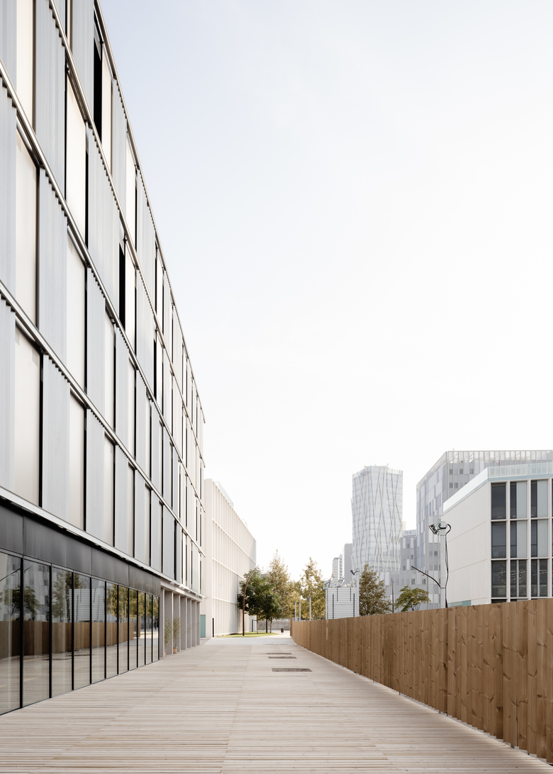 The new campus forms a compact urban unit. Buildings rise like sculptures along the Ronda Litoral and brilliantly symbolise what the campus wishes to be: a confluence of knowledge and exchanging ideas, of education and research for students, professors and researchers, in a contemporary and open environment with a promising and sustainable vision of the future.