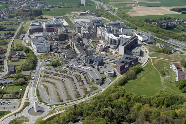 Since the 1970s, the Gasthuisberg hospital campus has been built up increasingly densely. The master plan, designed by architecture firm AWG, describes Gasthuisberg as a ‘walled city on a hill’. It prescribes that the new developments should not be distributed ‘outside the walls’, instead stating that the city on the hill should be further condensed within the contours of the ring road.