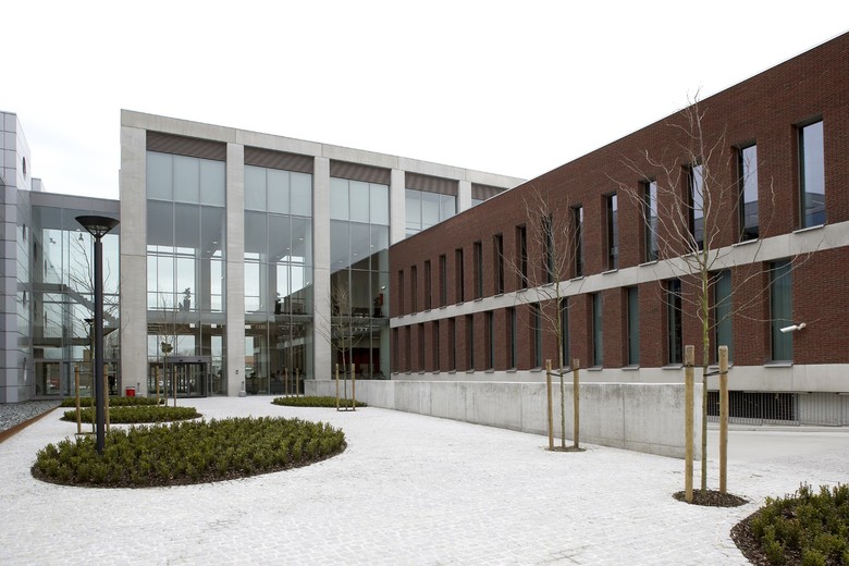 In the late 1990s, Telenet built its headquarters on the site of a disused army barracks just outside the ring road around Mechelen. Telenet’s banal office volumes failed to fill the gap in the urban fabric. Their prominent presence disrupted the neighbourhood. Less than a decade later, the telecom company organized a design contest for the expansion of their offices and technical spaces. POLO Architects won with a design that remedied the scale violation and eased the transition between the various elements in the complex urban environment.