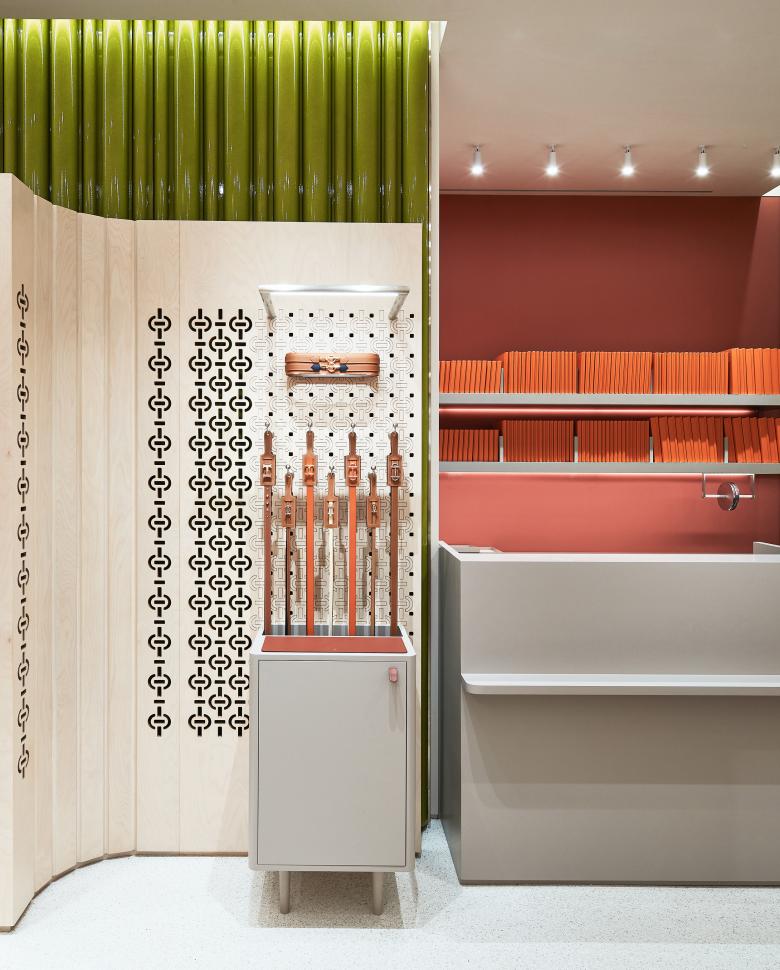 The pop-up store opened by Hermès in Seoul's Shinsegae Gangnam shopping centre is a dynamic space that balances the freshness, accessibility, and colour scheme of its finishes.