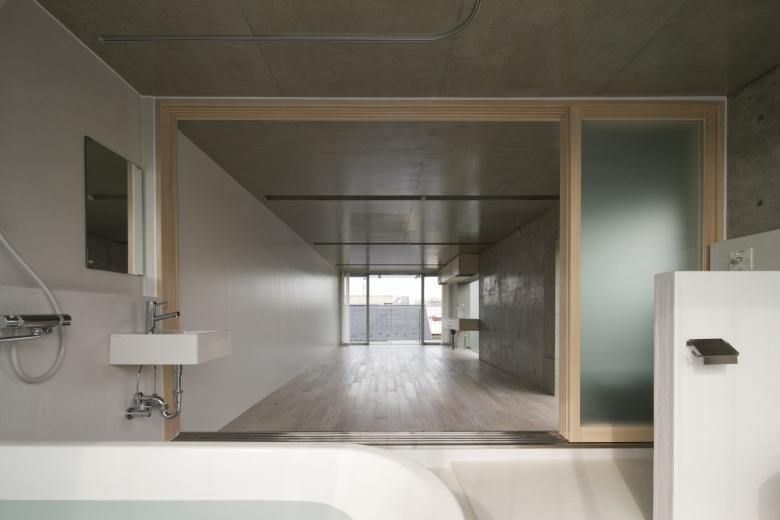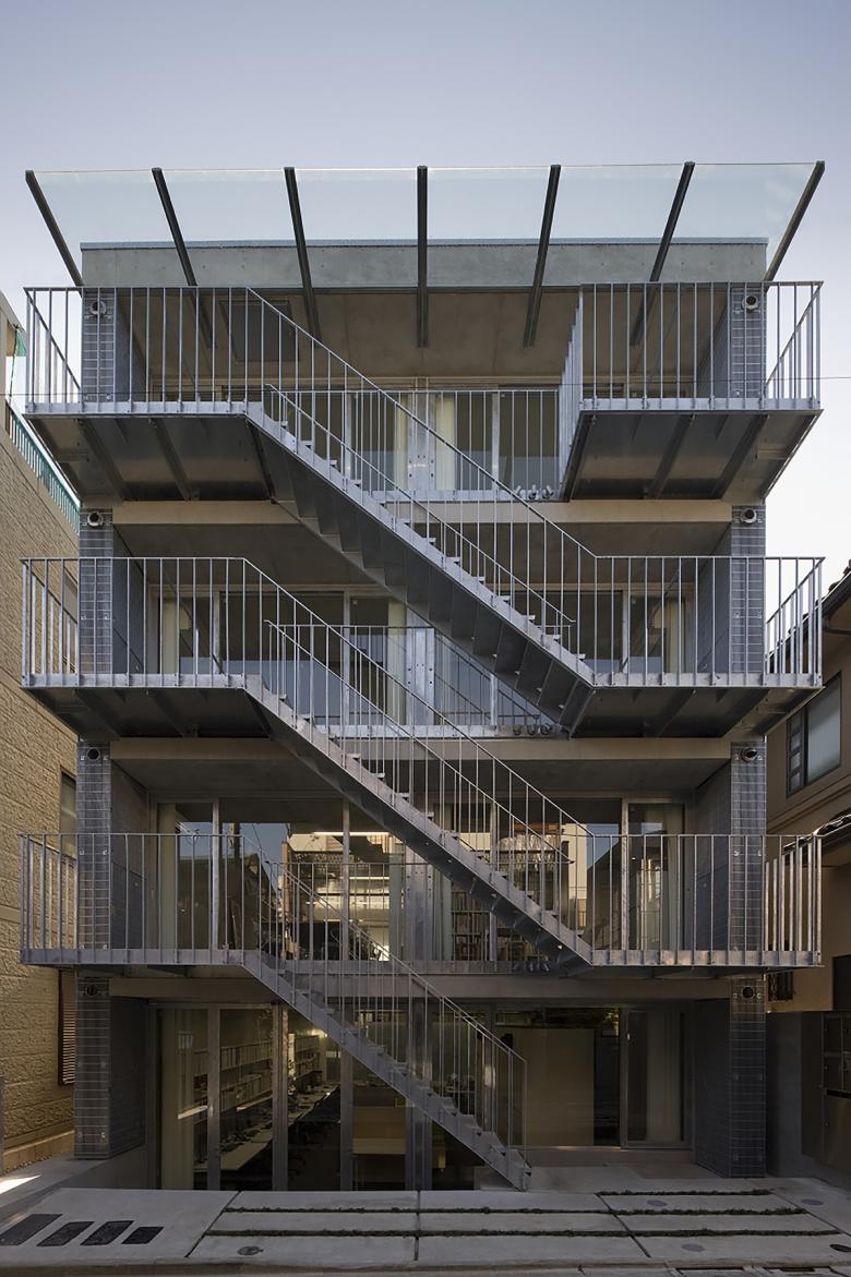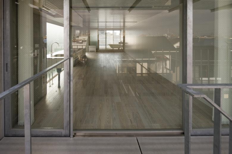 This concrete rigid-frame structure has an H-shaped and external insulation, forming a four-story skeleton-like space. Each floor has a simple plan with an open, terrace-like bathroom at the south end, allowing for a range of uses from residence to office to shop. The north side of each floor includes an open staircase and space that is strongly connected to the street outside. The idea was that the daily life of the people inside the building would enliven the town, and the design would encourage communication between the private and public realms. Our architecture office is located on the first two floors of this building.